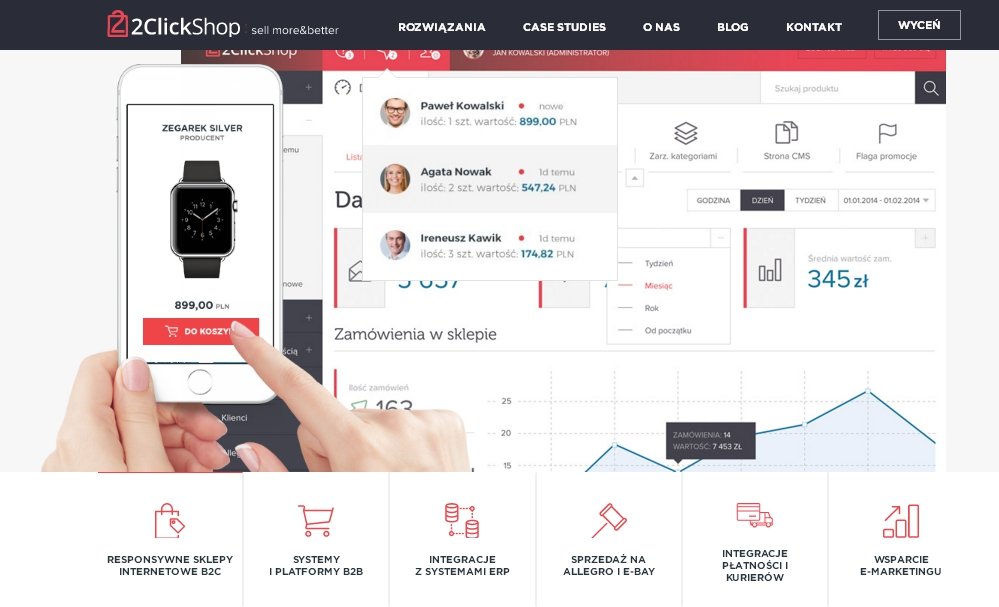 Igor Czajkowski: 2ClickShop to platforma przeznaczona dla dedykowanych wdrożeń eCommerce B2C i B2B, zintegrowanych z systemami magazynowymi oraz systemami klasy ERP w czasie rzeczywistym. Jestem pewien, że to jedyne na rynku rozwiązanie, zapewniające tak dużą elastyczność opartą o unikalne połączenie funkcjonalności systemów - składników nowoczesnego e-commerce, jak PIM - system zarządzania informacją o produkcie, CMS - system zarządzania treścią, eCommerce B2C, eCommerce B2B, czy e-mail marketing; innowacyjnych rozwiązań dla danych branż oraz opieki autorskiego zespołu wdrożeniowego.