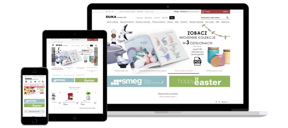 Mobile first to zasada, która mówi o tym, że projektowanie stron internetowych powinno się zacząć od wersji mobilnej. Wynika to z faktu, że pierwszy kontakt z internetem w ciągu dnia użytkownik ma właśnie przez smartfona. Takie podejście pozwala ułatwia także odpowiednie zaprojektowanie nawigacji oraz rozmieszczenia elementów. To ważne, bo aż 60% użytkowników deklaruje, że nie znajduje na stronie internetowej informacji których szuka. Projektując nawigację warto też pamiętać o tym, że może w przyszłości będziemy rozbudowywać sklep i pojawi się więcej kategorii z uwagi na rozrastającą się liczbę produktów.