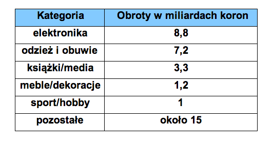 TABELA 2. Obroty w szwedzkim e-commerce z podziałem na kategorie produktów (2013)