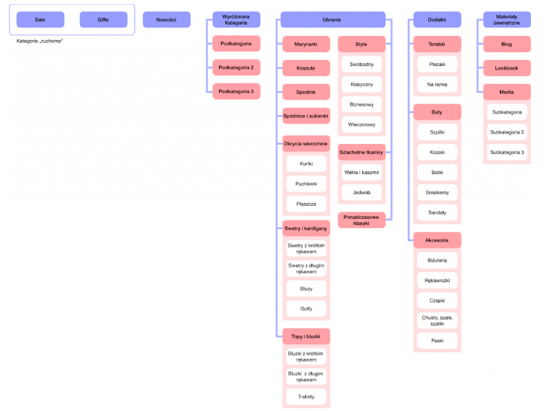 Efektem metody card sorting jest stworzenie struktury menu. Poszczególne elementy są ustawione na podstawie ustalonej hierarchii.